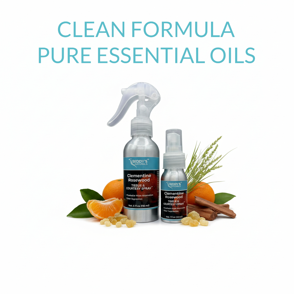 Clementine Rosewood Tissue & Courtesy Spray™ – Citrus-Soft, Warm & Elegant 1oz